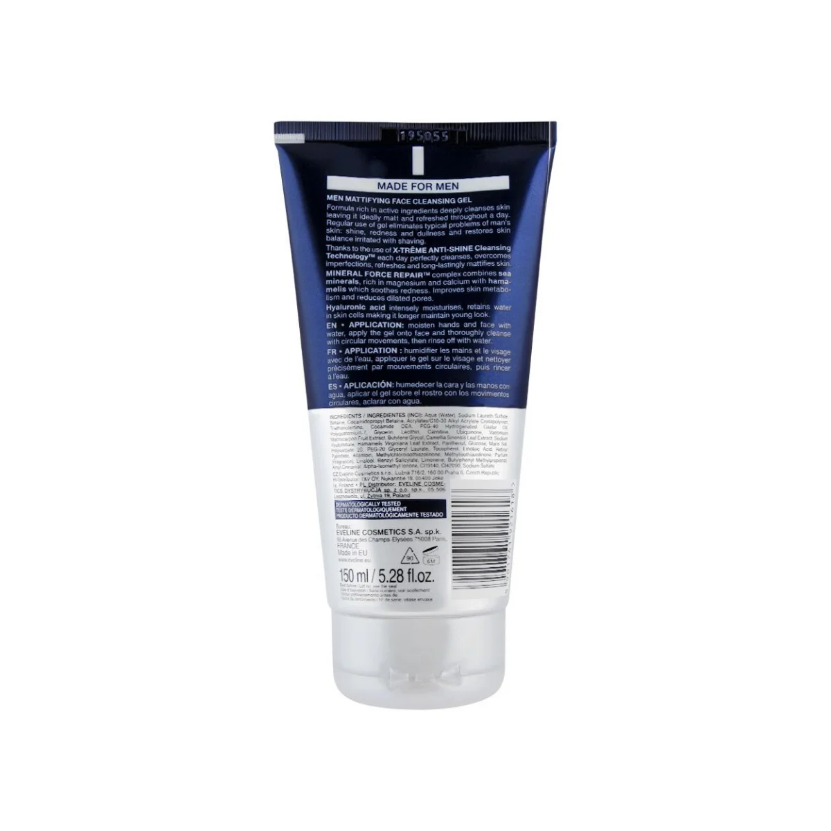 Eveline Men X-treme Mattifying Face Cleansing Gel 6-in-1 deeply cleans, removes oil, prevents shine, fights imperfections, hydrates, and refreshes. With anti-shine technology, it keeps men?s skin clear, matte, and comfortable?perfect for daily care of oily or combo skin.