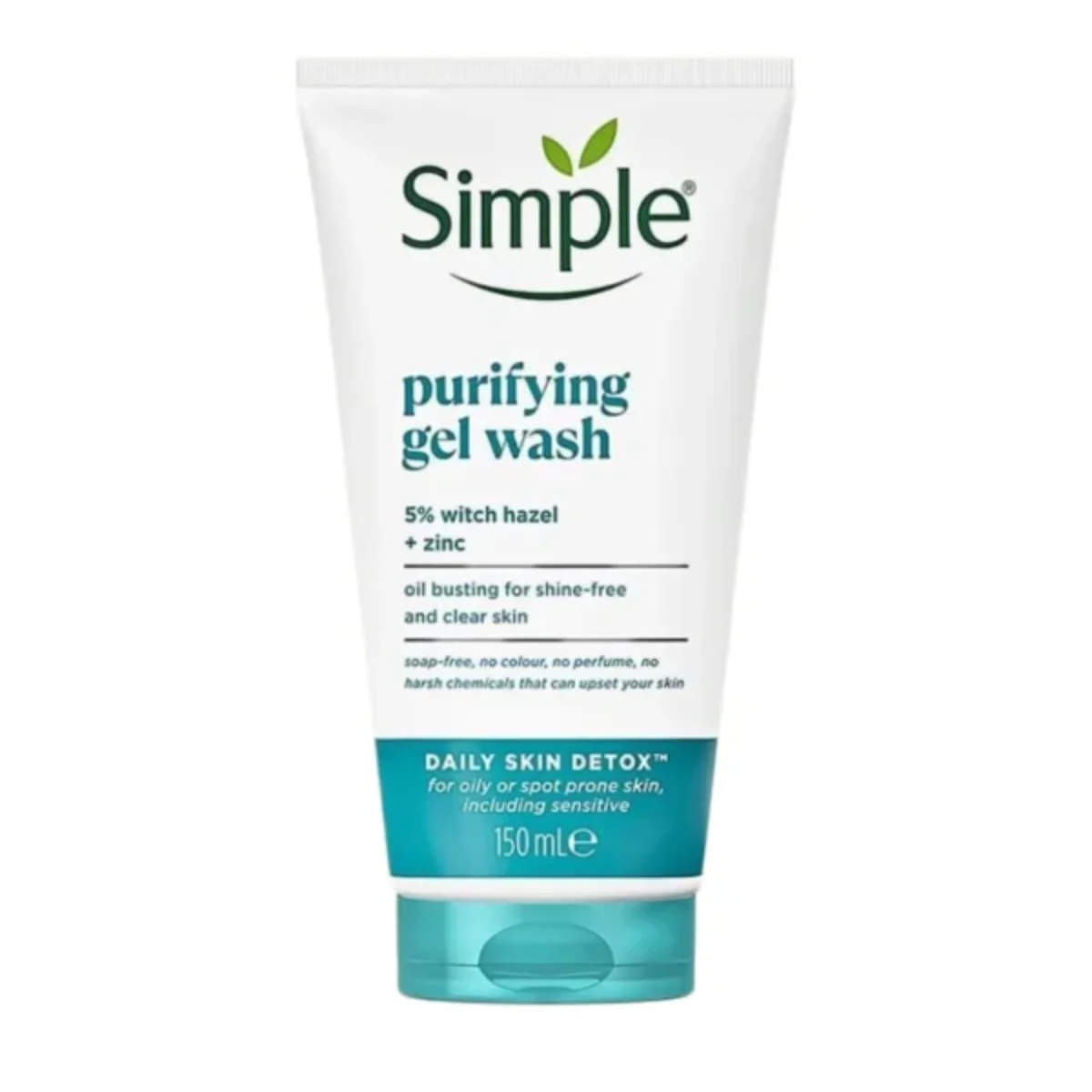 Simple Purifying Gel Wash cleanses, detoxifies, and mattifies oily, spot-prone skin with 5% witch hazel and zinc. Soap-free, fragrance-free, and gentle, it clears impurities and calms sensitive skin for a shine-free, healthy complexion every day.