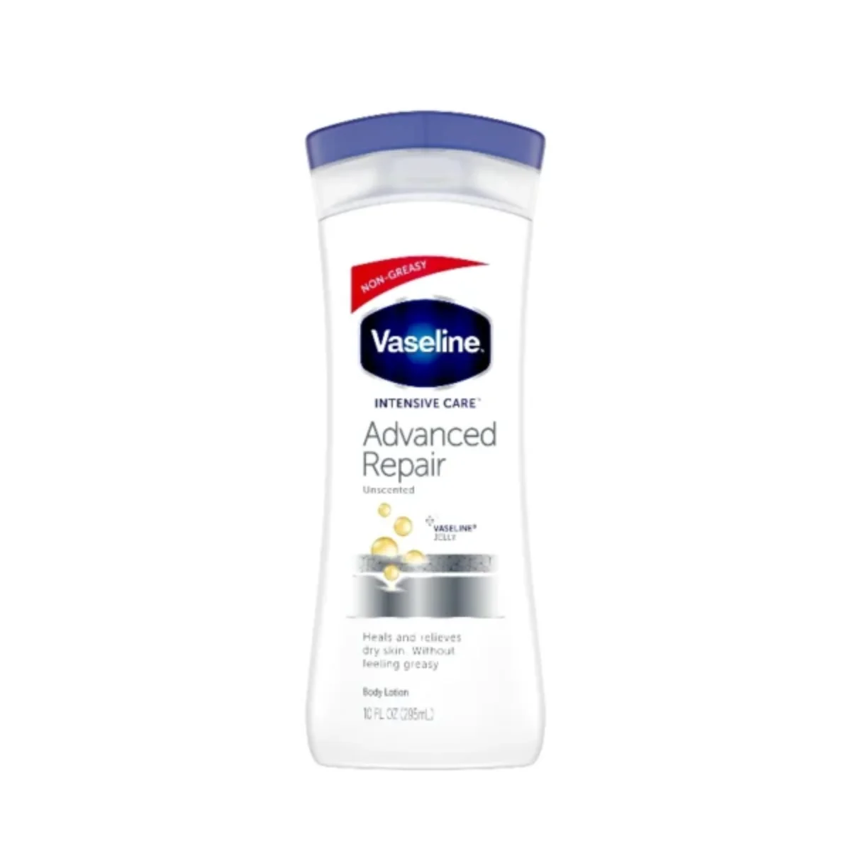 Vaseline Intensive Care Advanced Repair Body Lotion deeply hydrates and repairs very dry skin with Vaseline Jelly and glycerin. Lightweight and fast-absorbing, it restores softness, strengthens the skin barrier, and provides long-lasting moisture for healthy, smooth skin.